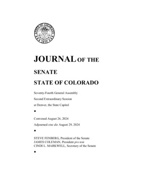 Journal of the Senate State of Colorado: Fifty-eighth General Assembly Second Extraordinary Session at Denver, the State Capitol